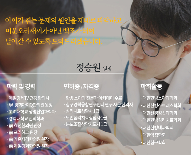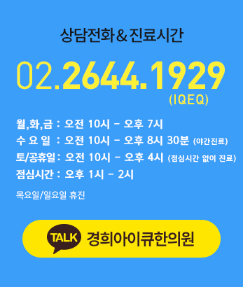 7. 개인정보의 제3자 제공 ‘본원’은 제 3자에게 개인정보를 제공한 내역이 없습니다. ‘본원’은 회원님의 소중한 개인정보를 안전하게 관리하기 위해 최선을 다하겠습니다. 8. 이용자 및 법정대리인의 권리와 그 행사방법 만14세 미만 아동(이하 "아동"이라 함)의 회원가입은 아동이 이해하기 쉬운 평이한 표현으로 작성된 별도의 양식을 통해 이루어지고 있으며 개인정보 수집시 반드시 법정대리인의 동의를 구하고 있습니다. 본원은 법정대리인의 동의를 받기 위하여 아동으로부터 법정대리인의 성명과 연락처 등 최소한의 정보를 수집하고 있으며, 개인정보취급방침에서 규정하고 있는 방법에 따라 법정대리인의 동의를 받고 있습니다. 아동의 법정대리인은 아동의 개인정보에 대한 열람, 정정 및 삭제를 요청할 수 있습니다. 아동의 개인정보를 열람•정정, 삭제하고자 할 경우에는 회원정보수정을 클릭하여 법정대리인 확인 절차를 거치신 후 아동의 개인정보를 법정대리인이 직접 열람•정정, 삭제하거나, 개인정보보호책임자로 서면, 전화, 또는 Fax등으로 연락하시면 필요한 조치를 취합니다. 본원은 아동에 관한 정보를 제3자에게 제공하거나 공유하지 않으며, 아동으로부터 수집한 개인정보에 대하여 법정대리인이 오류의 정정을 요구하는 경우 그 오류를 정정할 때까지 해당 개인정보의 이용 및 제공을 금지합니다. ※ 법에 의해 보관이 의무화된 개인정보는 요청이 있더라도 보관기간 내에 수정•삭제할 수 없습니다. 9. 동의철회 / 회원탈퇴 방법 귀하는 회원가입 시 개인정보의 수집ㆍ이용 및 제공에 대해 동의하신 내용을 언제든지 철회하실 수 있습니다. 회원탈퇴는 본원 홈페이지 마이페이지의 『회원탈퇴』를 클릭하여 본인 확인 절차를 거치신 후 직접 회원탈퇴를 하시거나, 개인정보관리책임자로 서면, 전화 또는 Fax 등으로 연락하시면 지체 없이 귀하의 개인정보를 파기하는 등 필요한 조치를 하겠습니다. 10. 개인정보 자동수집 장치의 설치, 운영 및 그 거부에 관한 사항 본원은 귀하의 정보를 수시로 저장하고 찾아내는 ‘쿠키(cookie)’ 등을 운용합니다. 쿠키란 웹사이트를 운영하는데 이용되는 서버가 귀하의 브라우저에 보내는 아주 작은 텍스트 파일로서 귀하의 컴퓨터 하드디스크에 저장됩니다. 본원은 다음과 같은 목적을 위해 쿠키를 사용합니다. [쿠키 등 사용 목적] - 회원과 비회원의 접속 빈도나 방문 시간 등을 분석, 이용자의 취향과 관심분야를 파악 및 자취 추적, 각종 이벤트 참여 정도 및 방문 회수 파악 등을 통한 타겟 마케팅 및 개인 맞춤 서비스 제공. 귀하는 쿠키 설치에 대한 선택권을 가지고 있습니다. 따라서, 귀하는 웹브라우저에서 옵션을 설정함으로써 모든 쿠키를 허용하거나, 쿠키가 저장될 때마다 확인을 거치거나, 아니면 모든 쿠키의 저장을 거부할 수도 있습니다. [쿠키 설정 거부 방법] 예: 쿠키 설정을 거부하는 방법으로는 회원님이 사용하시는 웹 브라우저의 옵션을 선택함으로써 모든 쿠키를 허용하거나 쿠키를 저장할 때마다 확인을 거치거나, 모든 쿠키의 저장을 거부할 수 있습니다. 설정방법 예(인터넷 익스플로어의 경우) : 웹 브라우저 상단의 도구 > 인터넷 옵션 > 개인정보 단, 귀하께서 쿠키 설치를 거부하였을 경우 서비스 제공에 어려움이 있을 수 있습니다. 11. 개인정보의 관리책임자 본원은 고객의 개인정보를 보호하고 개인정보와 관련한 불만을 처리하기 위하여 아래와 같이 관련 부서 및 개인정보관리책임자를 지정하고 있습니다. ■ 개인정보관리책임자 : 김오영 ■ 개인정보보호 실무담당자 : 김오영 ■ 소속부서 : 경희아이큐한의원 ■ 전화번호 : 032-569-1075 ■ 이메일 : kty7493@hanmail.net 귀하께서는 본원의 서비스를 이용하시며 발생하는 모든 개인정보보호 관련 민원을 개인정보관리책임자로 신고하실 수 있습니다. 본원은 이용자들의 신고사항에 대해 신속하게 충분한 답변을 드릴 것입니다. 기타 개인정보침해에 대한 신고나 상담이 필요하신 경우에는 아래 기관에 문의하시기 바랍니다. 개인분쟁조정위원회 (http://www.1336.or.kr / 1336) 정보보호마크인증위원회 (http://www.eprivacy.or.kr / (02) 580-0533~4) 대검찰청 사이버범죄수사단 (http://www.spo.go.kr / (02) 3480-3573) 경찰청 사이버테러대응센터 (http://www.ctrc.go.kr / (02) 392-0330) 12. 개인정보의 안전성 확보조치 본원은 이용자의 개인정보보호를 위한 기술적 대책으로서 여러 보안장치를 마련하고 있습니다. 이용자께서 제공하신 모든 정보는 방화벽 등 보안장비에 의해 안전하게 보호 / 관리되고 있습니다. 또한 본원은 이용자의 개인정보를 처리하는 인원을 최소한으로 제한하여 지속적인 보안교육을 실시하고 있습니다. 또한 개인정보를 처리하는 시스템의 사용자를 지정하여 사용자 비밀번호를 부여하고 이를 정기적으로 갱신하겠습니다. 13. 정책 변경에 따른 공지의무 이 개인정보취급방침은 2015년 9월 1일에 제정되었으며 법령ㆍ정책 또는 보안기술의 변경에 따라 내용의 추가ㆍ삭제 및 수정이 있을 시에는 변경되는 개인정보취급방침을 시행하기 최소 7일전에 본원 홈페이지를 통해 변경이유 및 내용 등