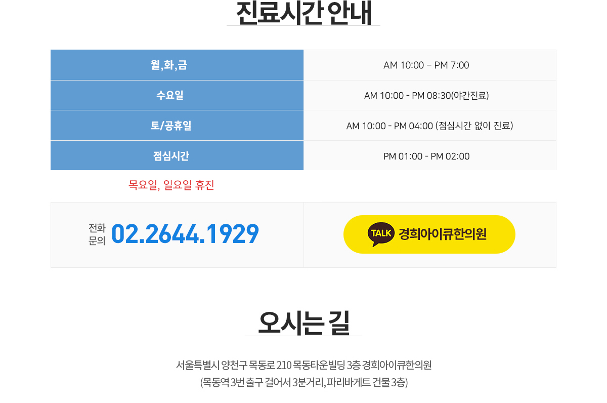경희아이큐 소개 진료안내&오시는길